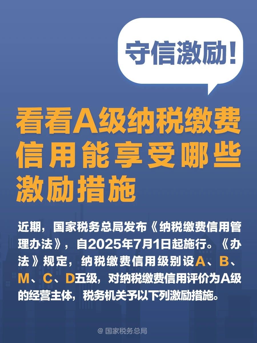 守信激励!看看A级纳税缴费信用能享受哪些激励措施